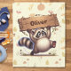 Couverture Polaire Cute Chubby Raccoon avec plaque de nom en bois