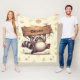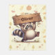 Cette couverture en toison personnalisée et amusante présente un joli raton laveur à poitrine portant un grand panneau en bois.