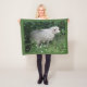 Cette superbe couverture en toison présente une photo d'un mignon mouton moelleux. Le mouton est entouré de fleurs sauvages et d'herbe longue et il mange avidement quelques feuilles. Il a une épaisse couche blanche de laine et un mignon nez noir.
