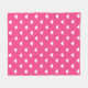 This adorable fleece blanket features a pattern of cute white hearts against a hot pink background.