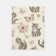 This blanket features delicate kittens amidst a backdrop of soft pastel colors, surrounded by blooming flowers and fluttering butterflies. Each kitten, with its striped fur and wide eyes, exudes a mixture of curiosity and charm, while the gentle hues of pink and beige create an inviting, serene atmosphere. The composition is harmonious, evoking a sense of whimsy and tranquility in this delightful design.