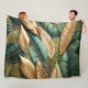 Couverture Polaire Design Feuille Tropical Vert Or Quilé