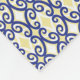 Couverture en polaire avec un motif en marine, jaune et blanc. Formes en diamant et éléments décoratifs tourbillonnant.