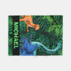 Ce design dinosaure est parfait pour les amateurs de dinosaures dans votre vie. La couverture en feuilles de jungle à thème dino est composée d'un trex, de tricératops, de brontosaurus et de raptor, et peut être customisée avec le nom du garçon ou de la fille.