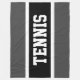 Ce design sportif amusant présente des grandes lettres fortes classiques à l'intérieur d'une large bande noire surlignée avec des rayures blanches sur un arrière - plan gris foncé avec "TENNIS" épelé à l'avant et au centre. Faites-le vous-même : Les couleurs et le texte de ce design peuvent être personnalisés.