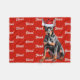 Your dog deserves a blanket of their own, especially with their name and breed on it. Fun throw to warm the season by the fireside or tossed over the sofa. A Doberman dog in a Santa hat on a red background for the Dobie lover's holiday home decor, with your dog's name patterned across the dog blanket. Background color is yours to change.