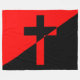 Ce dessin est orné d'un drapeau de la politique socialiste chrétienne ou anarchiste. Le socialisme chrétien est une philosophie religieuse et politique qui soutient la politique de gauche et l'économie socialiste sur la base de la Sainte Bible et des enseignements de Jésus de Nazareth. De nombreux socialistes chrétiens pensent que le capitalisme est idolâtré et qu'il est en fin de compte enraciné dans le péché de la cupidité. L'anarchisme chrétien est un mouvement de théologie politique qui prétend que l'anarchisme est inhérent au christianisme et aux évangiles. L'idéologie est fondée sur la croyance qu'il n'y a qu'une seule source d'autorité à laquelle les chrétiens sont en fin de compte responsables, qui est l'autorité de Dieu telle qu'incarnée dans les enseignements de Jésus-Christ. Il rejette donc l'idée que les gouvernements humains ont une autorité légitime sur les sociétés humaines. La plupart des anarchistes chrétiens sont des pacifistes qui rejettent la guerre et l'usage de la violence. Le drapeau de l'anarchisme et du socialisme chrétiens est orné du dessin traditionnel rouge et noir de la politique anarchiste recouvert d'un crucifix chrétien. La conception du drapeau est basée sur les illustrations existantes (https://commons.wikimedia.org/wiki/File:Christian_Socialism_Anarchism.svg).