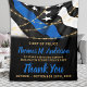 Lingette de retraite de police - Etats-Unis Drapeau américain design en couleurs Police Drapeau, noir et bleu moderne avec des lampes à cordes d'or design. Cette couverture de police personnalisée est parfaite pour célébrer votre agent d'application de la loi à la retraite, les cadeaux de la retraite de la police, la partie de retraite de l'application de la loi. Personnalisez cette couverture de retraite de la police avec le grade, le nom, les années de service, le service de police et la date de retraite, et le message personnel. Parfait pour tous les partis de retraite des policiers et les cadeaux de retraite des forces de l'ordre. DROIT D'AUTEUR © 2020 Judy Burrows, Black Dog Art - Tous droits réservés. Retraite de la police personnalisée Ligne Bleue mince Drapeau Blanche polaire