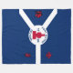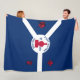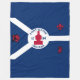 Fleece Blanket avec le drapeau de la ville de Fort Wayne, Indiana; drapeau bleu et blanc et avec le blockhouse rouge au centre et trois illustrations dans le champ bleu - illustration de la tête des Amérindiens, fleur de lys français et lion britannique