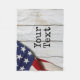 Vintage American flag forming the top border of a white washed, wooden weathered background