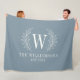 Couverture Polaire Dusty Blue Modern Laurel Leaf Monogramme