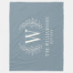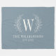 Un joli monogramme de feuille de laurier décore cette couverture en toison bleu poussiéreux. Fait un grand cadeau pour un mariage ou un anniversaire.