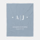 Cette couverture en toison offre un design minimaliste moderne avec un monogramme et le nom et la date du mariage des jeunes mariés. L'arrière - plan est bleu poussiéreux et peut être changé en n'importe quelle autre couleur. C'est un grand cadeau personnalisé pour les jeunes mariés.