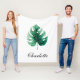 Design moderne de couverture en toison avec une feuille de monstère vert aquarelle peinte à la main. Le texte est personnalisable.