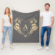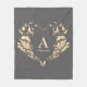 Couverture moderne, élégante, élégante en toison gris avec élégant monogramme de coeur de feuillage doré.