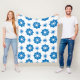 Couverture Polaire Élégant Motif Floral Géométrique Bleu Et Blanc