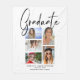 Élégant Script Multi Photo Graduation Graduate Fleece Blanket présente cinq de vos photos préférées de votre diplômé de l'université ou du lycée avec le script tourbillonnant moderne de calligraphie noire superposition "Graduate". Un cadeau de remise de diplômes simple, élégant et classe. Créé par ©Evco Studio www.zazzle.com/store/evcostudio