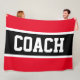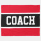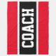 Des lettres fortes en gras à l'intérieur d'une large bande noire surlignée avec des rayures blanches sur un arrière - plan rouge vif avec "COACH" épelé à l'avant et au centre. Le texte peut être personnalisé.