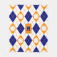 Cette équipe de basketball cool colore une couverture en toison avec un motif plaid en Jacquard bleu, orange et blanc avec une "couture" orange s'étendant en diagonale à travers les formes en losange et des boules de basketball semi-transparentes qui se superposent et se mélangent aux formes en losange orange - customiser avec le monogramme de l'athlète - par katz_d_zynes