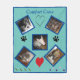 J'ai conçu cette couverture pour un de mes amis diagnostiqué d'un cancer des ovaires. Alors qu'elle se préparait à lutter contre le cancer, j'ai essayé de penser au cadeau parfait à lui donner. J'ai commencé à chercher des cadeaux appropriés pour donner à quelqu'un qui combat le cancer. Beaucoup de gens qui pratiquaient la chimiothérapie ont commenté que la couverture confortable qu'ils apportaient avec eux à leurs traitements était la chose la plus réconfortante qu'ils avaient pendant leur traitement. Ma copine aime absolument ses chiens et je sais qu'ils lui apportent autant de réconfort chaque jour c'était vraiment beaucoup plus personnel et spécial. Mes chiens et chats sont représentés sur cette couverture mais devraient être remplacés par vos propres animaux de compagnie ou vos proches. La couleur turquoise arrière - plan représente le cancer de l'ovaire mais peut être modifiée pour montrer le cancer que votre être cher combat. La couleur bleue des cadres peut aussi être changée, tout comme la bordure bleue foncée pour mieux correspondre à la couleur de cancer que vous avez choisie.