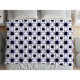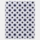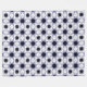 Les serviettes et un gant de toilette présentent un motif géométrique avec des étoiles et des cercles bleu marine sur fond blanc, offrant une apparence moderne et sophistiquée.