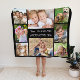Couverture Polaire Famille Monogramme Nom 8 Photo Collage noir