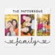 Family 3 Photo Template Personalized Script Fleece Blanket features your family name with three of your favorite photos below and the text "family" in elegant calligraphy script accented with cute love hearts. Make the perfect keepsake for family members. Custom photo collage fleece blanket for Father's Day, Mother's Day, Grandparents Day, Christmas and birthdays. Personalize by editing the text in the text box provided. Designed by ©Evco Studio www.zazzle.com/store/evcostudio