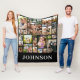 Make your own blanket featuring 28 of your cherished photo memories in a modern grid style photo collage. Simply add your pictures and family monogram name for custom photo home decor or personalized gift for family.