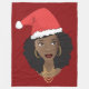 Ce design présente une femme afro-américaine avec un chapeau de Père Noël sur sa fabuleuse afro et des accessoires en or sur un arrière - plan rouge.