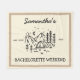 plaid personnalisé moderne simple de fête de bachelorette de camping en taupe neutre et blanc avec une tente dans la forêt est parfait comme toile de fond pour photo de fête de bachelorette. Célébrez votre enterrement de vie de jeune fille dans le style avec le thème parfait pour une fête de week-end de camping, le thème parfait pour la mariée nostalgique vintage des années 70 et ses demoiselles d'honneur.