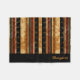 Des couleurs chaudes et un motif sophistiqué sont incorporés à cette conception. Des rayures de noir, de rouge, de vert-foncé, et une couleur d'or sont placées par des images d'une silhouette de feuille. Personnaliser avec le texte de votre choix.