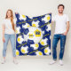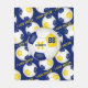 Cette couverture en polaire de football sportif présente l'image réaliste d'une boule de football surdimensionnée qui a des panneaux bleu, or et blanc sur lesquels son nom, monogramme et numéro de maillot peuvent être personnalisés, surplombant un motif de petites boules de football bleu, or et blanc et le texte de police sportive "I LOVE SOCCER" qui s'étire entre les rangées de boules de football personnalisées - arrière - plan est bleu reconnaissable - par katz_d_zynes