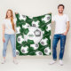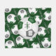 Cette couverture en polaire de football sportif présente l'image réaliste d'une boule de football surdimensionnée avec des panneaux verts, gris et blancs sur lesquels son nom, son monogramme et son numéro de maillot peuvent être personnalisés, surplombant un motif de petites boules de football vertes, grises et blanches et le texte de police sportive "I LOVE SOCCER" qui s'étend entre les rangées de boules de football - arrière - plan vert foncé personnalisable - par katz_d_zynes