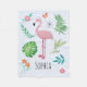 Cette couverture en toison mignonne et moderne pour enfants présente un flamand tropical rose unique, avec des plantes de jungle, un papillon et des fleurs, et peut être personnalisée avec votre nom de filles. Le cadeau flamand parfait !