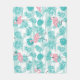 Couverture Polaire flamants roses, feuilles de palmiers verts, tropic