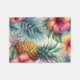 "Tropical Bloom" Un motif tropical vivant et coloré, aux ananas mûrs niché au milieu de luxuriants feuilles de palmiers turquoises et aux fleurs d'hibiscus vibrantes, dans les tons rouge, rose et orange. Ce design saisit l'essence d'un paradis tropical, mêlant une flore exotique à une ambiance fraîche et estivale.