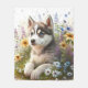 Couverture Polaire Fleurs d'aquarelle et chiot sibérien Husky