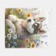 Superbe aquarelle Sibérie Husky design avec fleurs jaunes, bleues et violettes