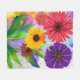 De belles fleurs colorées en orange, violet et jaune, peintes dans un style pop art, créent une couverture en toison attrayante et joyeuse.