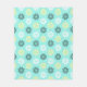 Couverture en polaire à imprimé floral aquatique. Les fleurs sont faites de cercles de hippocampes et sont jaunes, blanches et foncées sur un arrière - plan d'aqua clair.