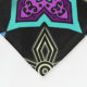 Cette couverture en toison ultra douce est ornée d'un design original d'inspiration Art Déco avec des ornements d'imprimante Star Flower dans des tons variés de bleu, aqua, violet & violet, contre un arrière - plan noir, surmonté de 3 bannières étroites et solides de couleur et d'un large éventail d'instruments horizontaux sur le noir. 3 champs de texte personnalisables pour les initiales du destinataire complètent le look.