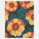 Couverture Polaire Fleurs jaune or et rouge avec Feuilles Turquoises