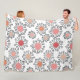 Cette grande couverture en toison a un design moderne du milieu du siècle de fleurs en cercles dans les tons rose, canneberge et beige et lignes noires.