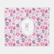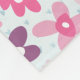 Une couverture avec un motif floral mignon. Composé de fleurs irrégulières roses et violettes dans un style rétro des années soixante super. Petits coeurs bleus pâles, poivrez l'arrière - plan sur un fond bleu pâle. Un cercle blanc dessiné à la main est superposé, personnalisez avec votre nom ou autre texte.