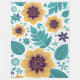 Ce design présente une combinaison attrayante de fleurs jaune vif avec des centres sombres complexes, dressés contre un arrière - plan blanc propre. Les fleurs sont complétées par des feuilles turquoises vibrants et divers éléments floraux turquoises et gris, créant une motif fraîche et vivante. De petits points gris et des étoiles turquoises apportent une touche ludique à la composition. Idéal pour les produits qui cherchent à incorporer un éclat de couleur joyeuse et une touche de nature.