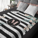 Couverture Polaire Flore floue sur bande noire et blanche Monogramme