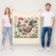 Couverture Polaire Folk Patchwork Rooster with Floral Accents