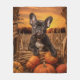 Embrassez le charme rustique de l'Automne avec notre magnifique plaid représentant un adorable Bouledogue Français dans un champ de récolte alors que le soleil se couche à l'arrière-plan.