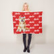 Your dog deserves a blanket of their own, especially with their name and breed on it. Fun throw to warm the season by the fireside or tossed over the sofa. An Akita in Santa hat, with the dog's name patterned on a red background. TIP: Choose Personalize to change the background color to one which matches your decor if you like.
