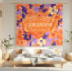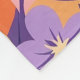 Un motif floral moderne et vivant sur un arrière - plan orange aux fleurs violettes, jaunes, oranges et roses.